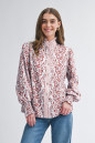 Floral Print Frilled Striped Trim Button Down Smocked Cuffs Long Sleeve Shirt